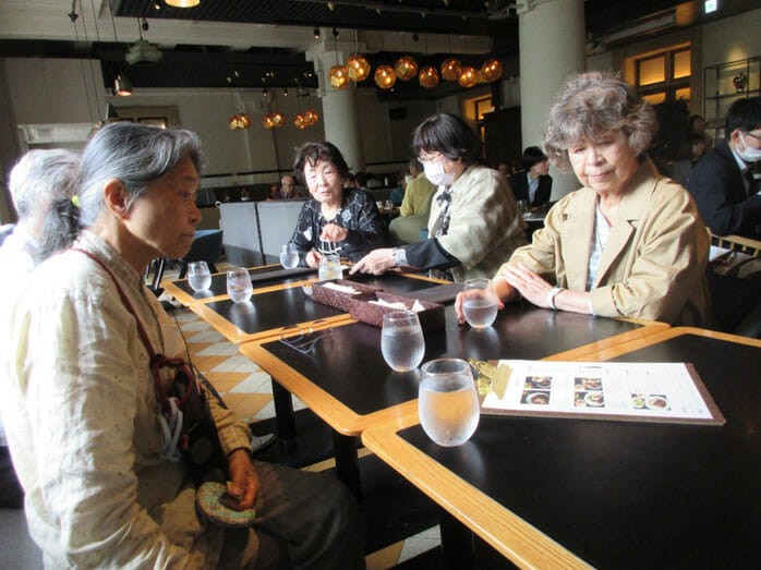 見学後、公会堂内のレストランで昼食をいただきながら懇談した。