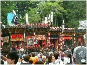 曳山が神社から御旅所まで向かう本通りに面する家々では「桟敷窓」があった。板塀を一部切り取り、中に桟敷を作って曳山を見る。この土地ならではの光景である。